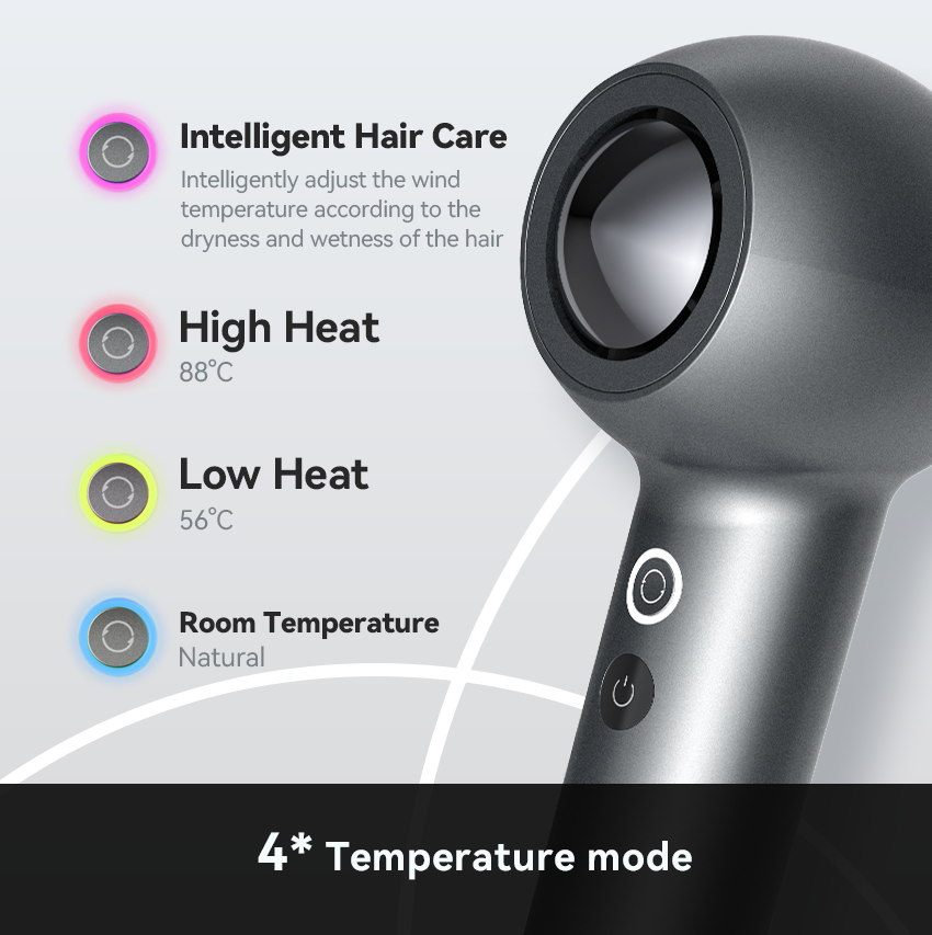 SYLPH TURBO is the flagship of wizevo Tech's new generation of intelligent technology hair dryers. It uses 112000 RPM high-speed BLDC, 200 million high-concentration negative ions,100 ambient temperature detection and monitoring per second, and multiple noise reduction technologies to make your hair blowing process comfortable and beautiful.